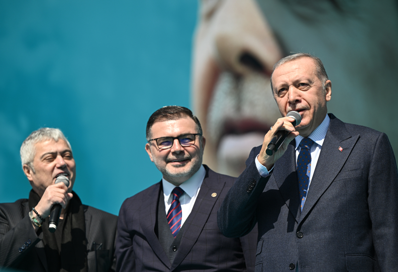 Erdoğan, konuşmasını "İzmir'in önündeki engelleri dağ gibi sağlam adayımız Hamza kardeşimle birlikte birer birer kaldıracağız. Cumhurbaşkanlığı ve bakanlıklarımız ile belediyelerimizin sizlere getireceği her yatırımın, her eserin, her hizmetin destekçisi olacağız." sözleriyle tamamladı.