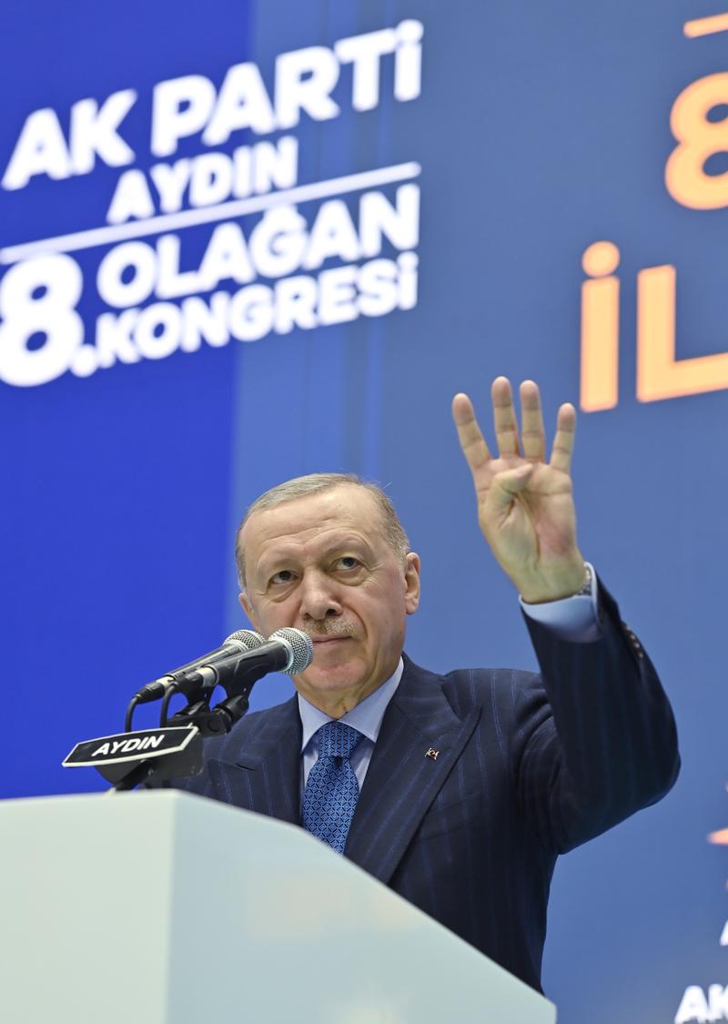 Erdoğan, Atatürk Spor Salonu'nda düzenlenen AK Parti Aydın 8. Olağan İl Kongresi'ne katıldı.