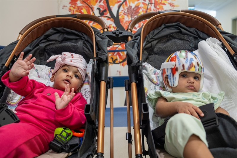 Pakistanlı Mirha ve Minal, Eylül 2023'te başlarından yapışık şekilde dünyaya geldi. Yaşadıkları ülkede evlatlarına tedavi imkanı bulamayan ailenin yardım çığlığına Türkiye kayıtsız kalmadı.