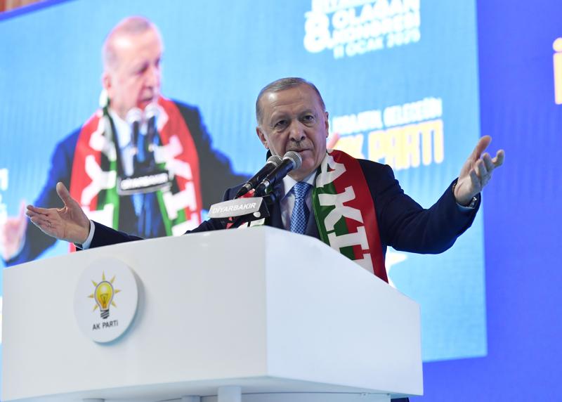 Cumhuriyetin kuruluş sürecine işaret eden Erdoğan, "Şimdi de omuz omuza verecek Türkiye Yüzyılı'nı birlikte inşa edeceğiz. Nasıl Cumhuriyet tarihi boyunca tek parti faşizminden darbelere kadar nice badirelere birlikte göğüs germişsek, demokrasi ve kalkınma tırmanışını da birlikte yapacağız. Unutmayınız, tıpkı 81 vilayetimizin her biri gibi Diyarbakırsız bir Türkiye yetim kalır. Tıpkı 783 bin kilometrekare vatan toprağının her karışı gibi, Türkiye'siz bir Diyarbakır öksüz kalır. " ifadelerini kullandı.