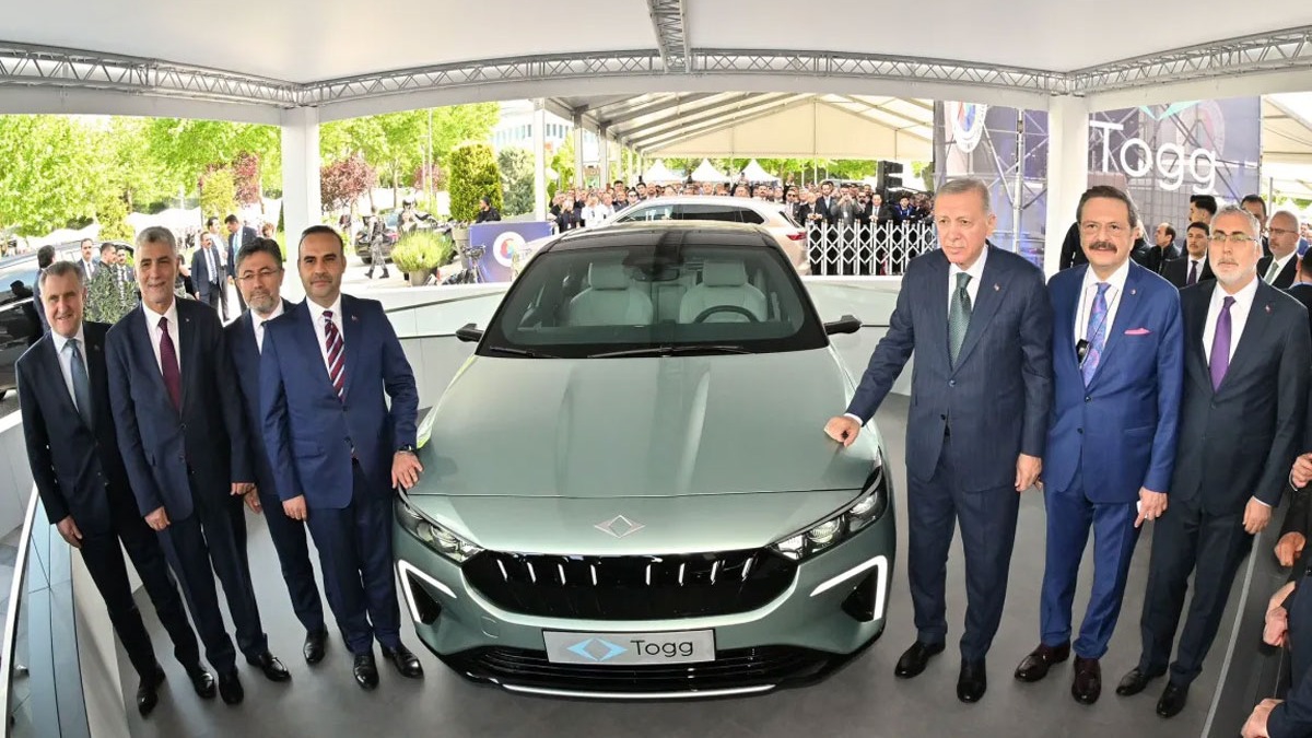 Burada, Togg'un yeni modeli T10F'yi inceleyerek yetkililerden bilgi alan Erdoğan'a, TOBB Başkanı Rifat Hisarcıklıoğlu, Çalışma ve Sosyal Güvenlik Bakanı Vedat Işıkhan, Sanayi ve Teknoloji Bakanı Mehmet Fatih Kacır, Tarım ve Orman Bakanı İbrahim Yumaklı ile Ticaret Bakanı Ömer Bolat eşlik etti.
