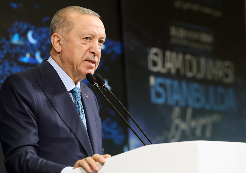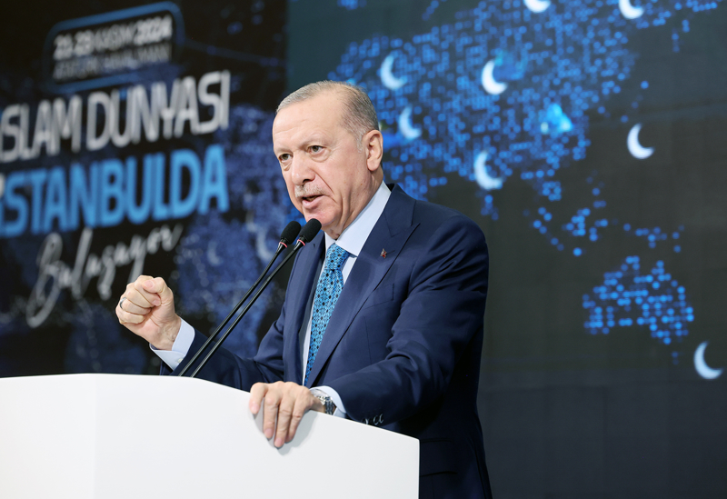 "İnsanlığın neredeyse tüm kurumlarıyla, tüm organlarıyla, tüm hücreleriyle kan kaybettiği bir dönemden geçiyoruz. Uluslararası sistemin, imtiyazlı aktörleri, kendi çıkarları uğruna İslam coğrafyası başta olmak üzere dünyanın farklı bölgelerini, savaş, çatışma ve istikrarsızlık girdabına sürüklüyor. Dünya bilhassa İslam alemi, zorlu bir sınamadan, kapsamlı bir kuşatmadan, sinsice hazırlanmış planların ateş çemberinden geçiyor. Bakınız, hemen yanı başımızdaki Filistin'de 14 aydır mazlumlar, masumlar, çocuklar, kadınlar, yaşlılar ve siviller acımasızca katlediliyor. Küresel yönetişim mekanizmaları, uluslararası örgütler ve uluslararası medya, Filistin'de, Lübnan'da ve daha pek çok bölgede işlenen insanlık suçlarını görmezden geliyor. Vahşetin gündeme gelmemesi için İsrail lehine tam anlamıyla bir karartma uygulanıyor."