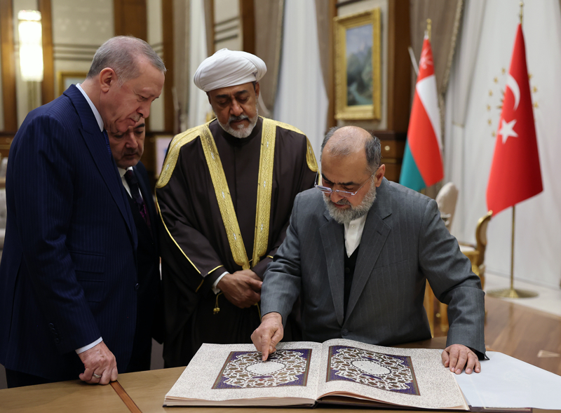 Cumhurbaşkanlığının sosyal medya hesabından yapılan açıklamaya göre, Erdoğan, Türkiye'ye resmi ziyarette bulunan Bin Tarık'a, Hattat Hüseyin Kutlu ve 66 kişilik ekibi tarafından hazırlanan "İstanbul Mushafı"nı takdim etti.