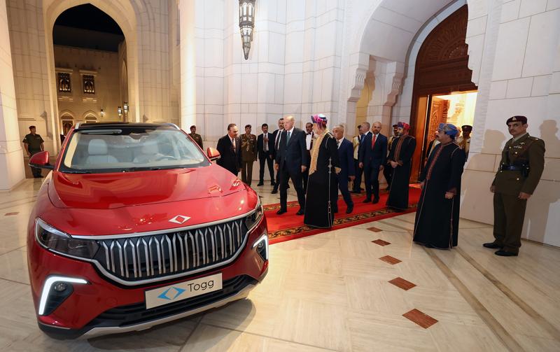 Erdoğan, görüşmenin ardından Heysem bin Tarık'a kırmızı renkte Togg hediye etti.