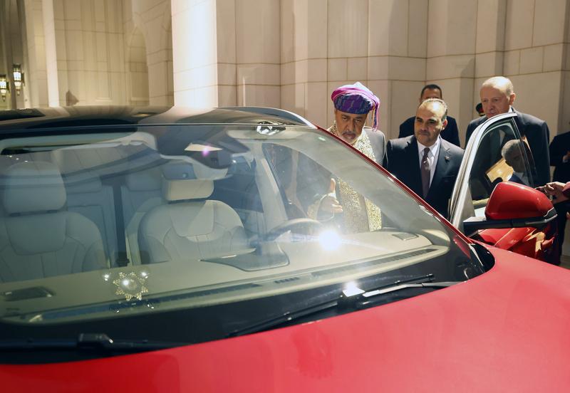 Heysem bin Tarık, Al Alam Sarayı'nın avlusunda Cumhurbaşkanı Erdoğan ile bir süre aracı inceledi.