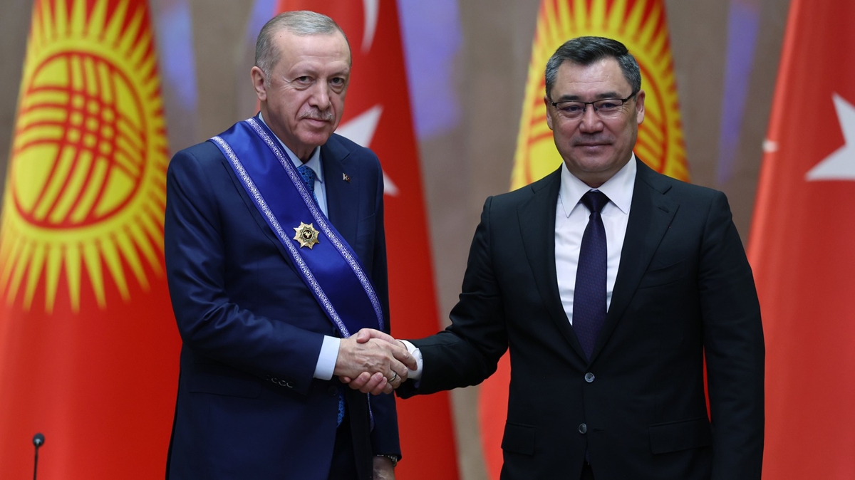 Türk Devletleri Teşkilatı (TDT) Devlet Başkanları Konseyi 11. Zirvesi için Kırgızistan'ın Başkenti Bişkek'te bulunan Erdoğan, Cumhurbaşkanlığı Sarayı'nda düzenlenen törene katıldı.