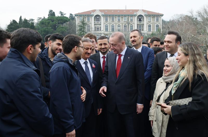 Burada kalabalık öğrenci grubu tarafından karşılanan Erdoğan'a bazı öğrenciler "Gençlik seninle gurur duyuyor" sloganıyla sevgi gösterisinde bulundu.