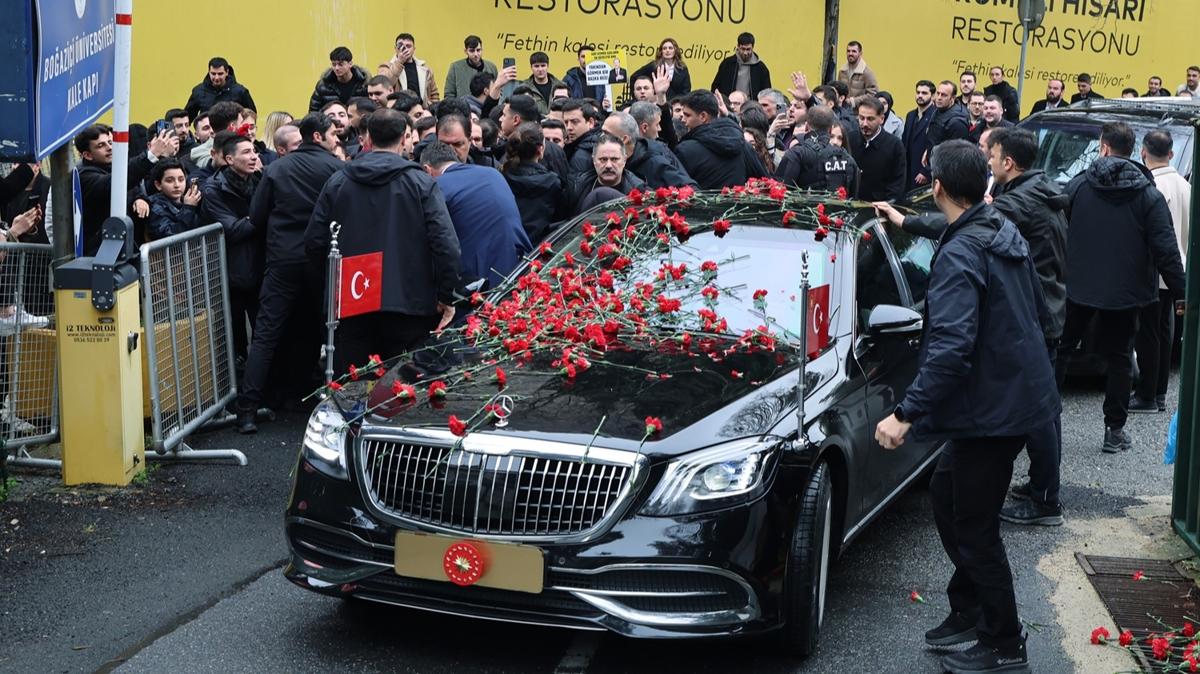 "ONLAR BİR AZINLIK"Bu sırada bir öğrenci Erdoğan'a, "Burada yüzlerce öğrenci arkadaşımız var, her biri sizi karşılamak için burada. Belki yarın bir gün linç kampanyasına maruz kalacağız ama onlar bir azınlık. Burada güçlü olan biziz, bizim sesimiz çıkıyor." dedi.