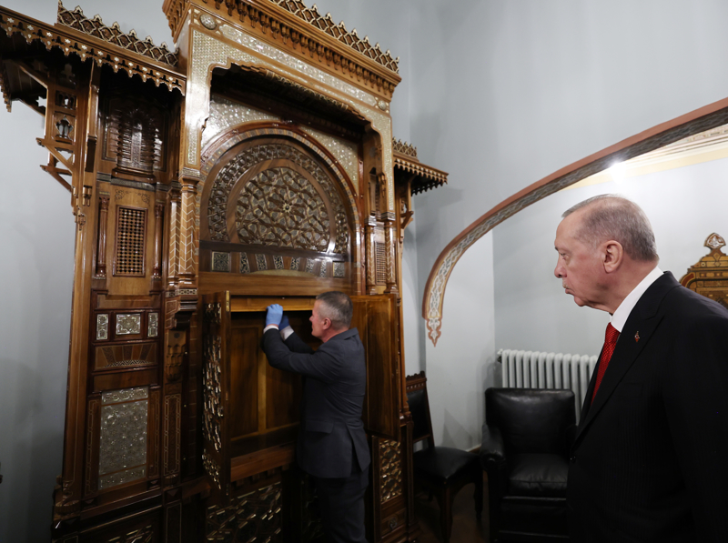 Cumhurbaşkanı Erdoğan, Atatürk'ün kullandığı eşyaları inceledi, Atatürk'e hediye edilen eşyalar ile yazı takımı ve radyosu hakkında bilgi aldı.
