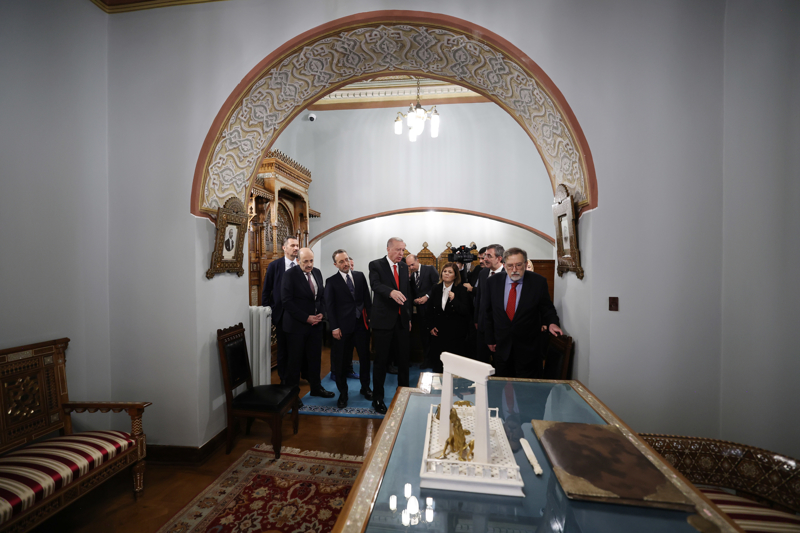 Cumhurbaşkanı Erdoğan ve beraberindekiler, açılışın ardından köşkü gezip, yetkililerden bilgi aldı.