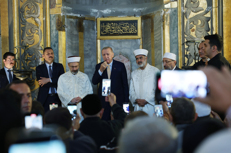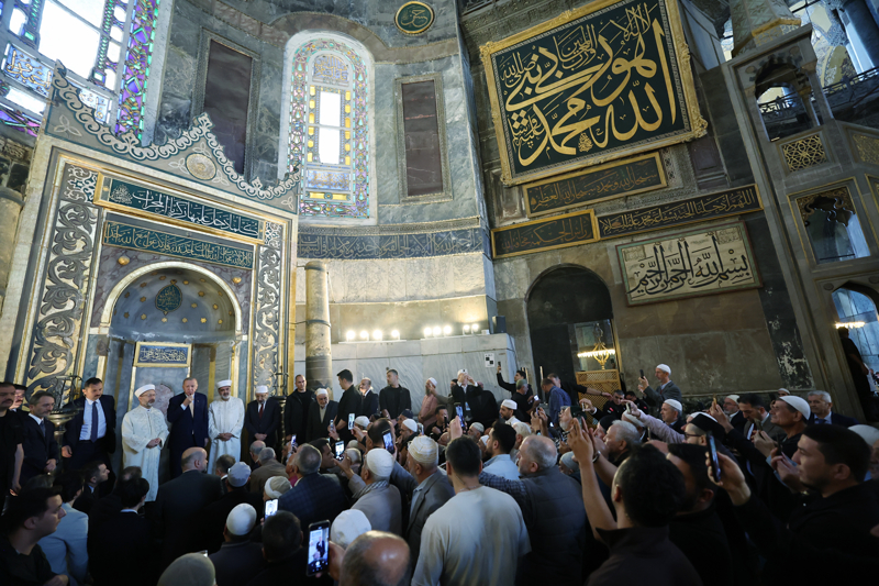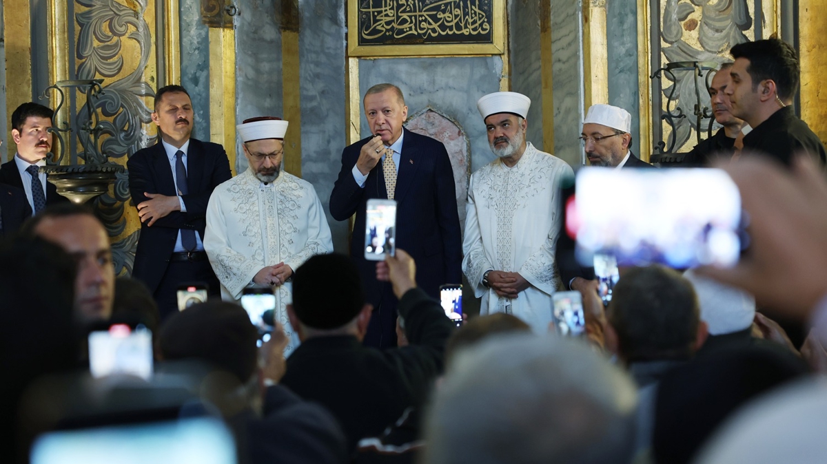Cumhurbaşkanı Erdoğan, öğle saatlerinde Üsküdar Kısıklı'daki konutundan çıkarak Ayasofya-i Kebir Cami-i Şerifi'ne geldi.
