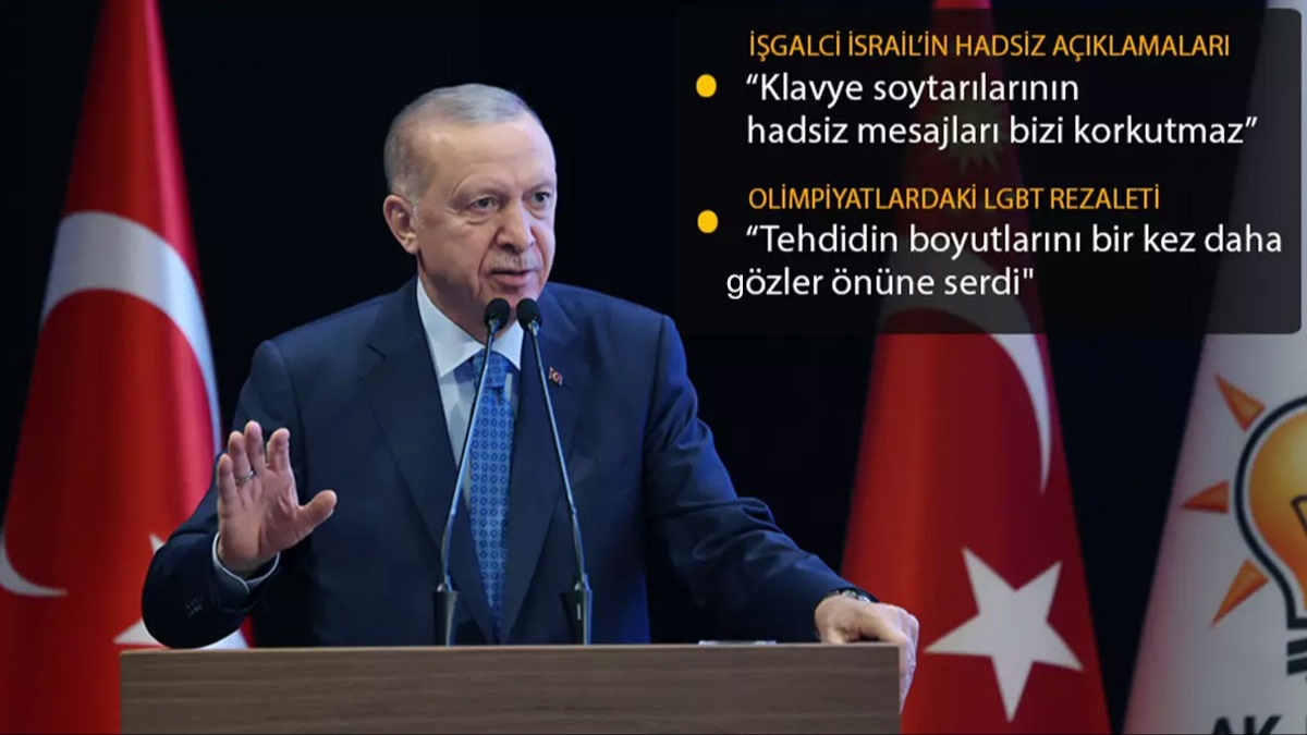 Cumhurbaşkanı ve AK Parti Genel Başkanı Recep Tayyip Erdoğan, "Paris 2024 Olimpiyat Oyunları'nın açılışında sahnelenen ahlaksızlık, karşı karşıya olduğumuz tehdidin boyutlarını bir kez daha gözler önüne serdi." dedi.