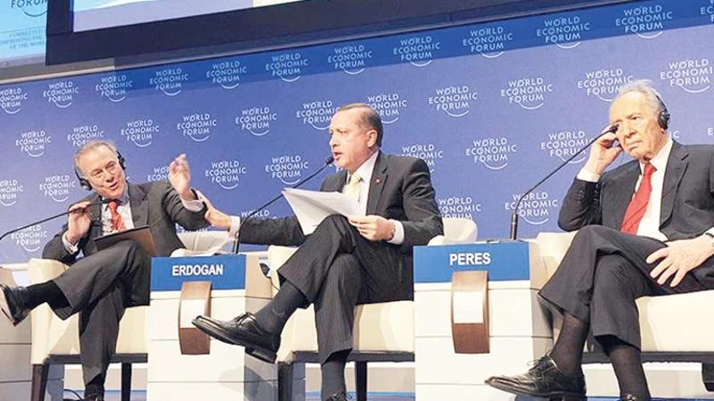 Davos'ta 29 Ocak 2009'da Dünya Ekonomik Forumu (WEF) kapsamında düzenlenen "Gazze: Ortadoğu'da Barış Modeli" başlıklı panele Erdoğan da davet edildi. Panele Erdoğan'ın yanı sıra dönemin İsrail Cumhurbaşkanı Şimon Peres ve Birleşmiş Milletler Genel Sekreteri Ban Ki-moon da katılım sağladı. Panelde, Peres'in Gazze saldırılarını meşrulaştıran sözleri ve diplomatik sınırları ihlal eden davranışlarıyla moderatör Washington Post yazarı David Ignatius'ın taraflı tutumu karşısında Erdoğan tepkisini gösterdi.