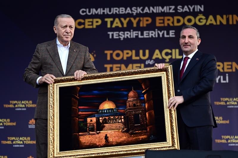Cumhurbaşkanı Erdoğan'a, Sultanbeyli Belediye Başkanı Ali Tombaş tarafından günün anısına hediye takdim edildi.