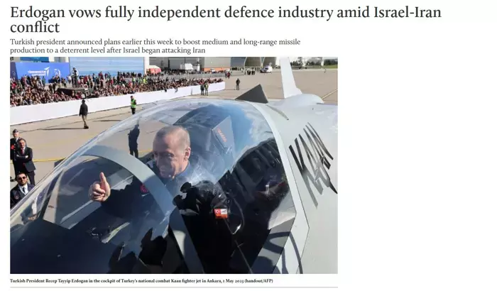 "Erdoğan, İsrail-İran çatışması ortasında tam bağımsız savunma sanayii sözü verdi" başlıklı haberde, Türkiye'nin orta ve uzun menzilli füze üretimini caydırıcı bir düzeye çıkarmayı hedeflediği vurgulandı.