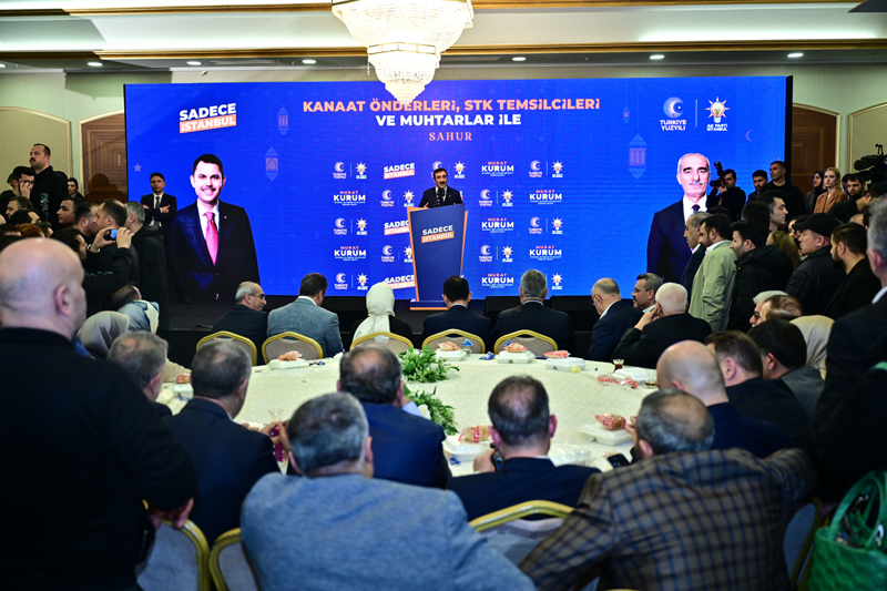 Cumhurbaşkanı Yardımcısı Cevdet Yılmaz, AK Parti İBB Başkan adayı Murat Kurum ile birlikte Esenyurt Nene Hatun Kültür Merkezi'nde düzenlenen "Kanaat Önderleri, STK Temsilcileri ve Muhtarlar ile Sahur Programı'na katıldı. Burada bir konuşma yapan Yılmaz, "Hem merkezde, hem de yerelde, siyaset anlayışımızın odağında hizmet var, insan var. 'İnsanı yaşat ki devlet yaşasın' diyen bir anlayışın temsilcileriyiz. Bu anlayışla 81 vilayetimize aynı gözle bakıyoruz. İstanbul bir dünya şehri, tüm Türkiye'nin özeti. İstanbul medeniyetimizin şehri. Gözbebeğimiz bir şehir. Bu aziz şehre hizmet etmek, burada büyükşehir belediyesi başkanı olmak bir onurdur" dedi.