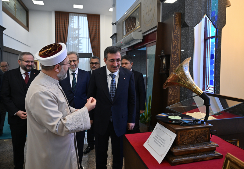 Cumhurbaşkanı Yardımcısı Cevdet Yılmaz ile Diyanet İşleri Başkanı Ali Erbaş, başkanlık tarafından sergilenen eski eserleri inceledi.