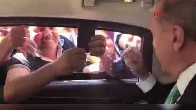 Cumhurbaşkanı Recep Tayyip Erdoğan, özellikle İstanbul'da makam aracını sık sık durdurup yol kenarında kendisine ilgi gösterenlerle sohbet ediyor. Dün de Fatih'te alışık olunan bu durum yaşandı. Ancak bu kez alışık olunmayan Cumhurbaşkanı Erdoğan'la sohbet eden kişinin cep telefonunu çıkarıp sosyal medya hesabından canlı yayın yapmasıydı. Erdoğan'ın sohbet ettiği kişi, "Evet canlı yayındayım. Sayın Cumhurbaşkanımla canlı canlı görüşüyorum, Ey Türkiye" diyerek yayın yaptı. O anları makam aracı içinde Cumhurbaşkanı Erdoğan'a eşlik eden Cumhurbaşkanlığı Sözcüsü İbrahim Kalın tarafından kaydederken, Cumhurbaşkanlığı fotoğrafçısı Murat Çetinmühürdar tarafından paylaşıldı.