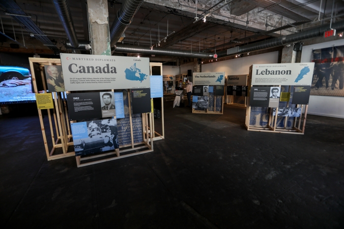 Ermeni teröristlerce gerçekleştirilen terör saldırıları ve suikastların ülke, şehir bazlı grafikler ve tarih şeridiyle gösterildiği panoların yer aldığı sergide, ayrıca şehit edilen diplomatların yapay zeka teknolojileriyle yüksek çözünürlüklü hale getirilen fotoğrafları ve hikayelerine yer verilen özel görseller bulunuyor.