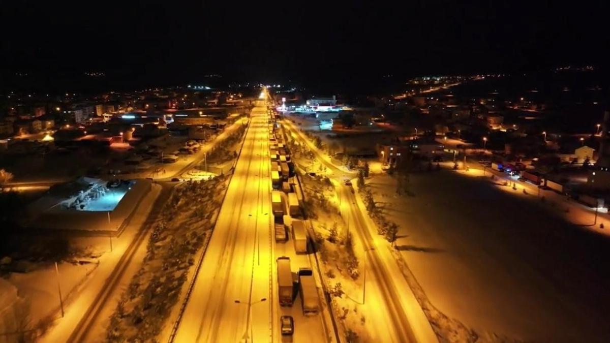 Çankırı'nın Çerkeş ilçesinde, İstanbul'u Karadeniz'e bağlayan D-100 karayolu, yoğun kar yağışı ve buzlanma sebebiyle ulaşıma kapandı.