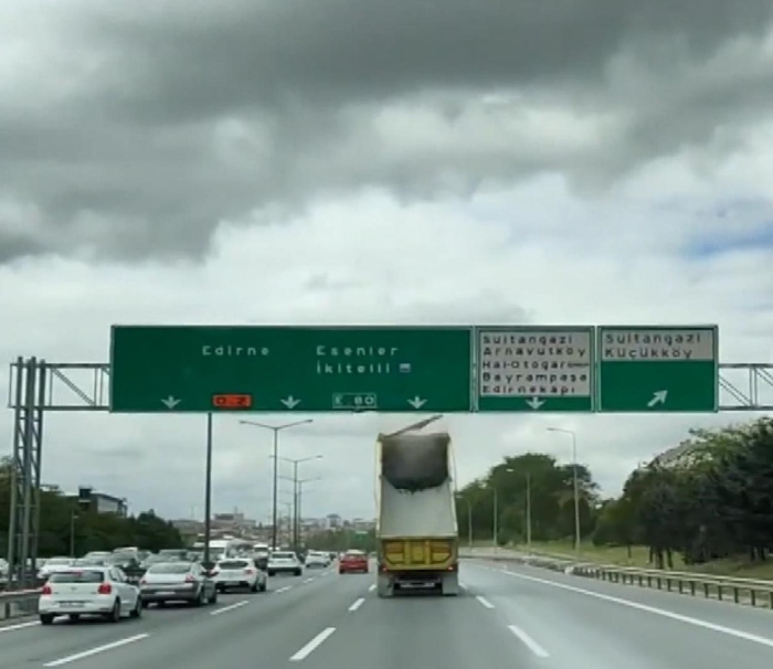 Olay, dün sabah saatlerinde TEM Otoyolu Sultangazi mevkii Edirne istikametinde meydana geldi. Otoyolda giden hafriyat kamyonun damperi açıldı. Damperin açıldığını anlamayan kamyon şoförü, kendisini uyarmak için çalınan kornaları da fark etmedi. Kısa süre sonra kamyonun damperi, yol tabelasına çarptı. Kazada yaralanan olmazken, araç ve tabelada hasar oluştu. Yaşananlar cep telefonu kamerasına yansıdı.
