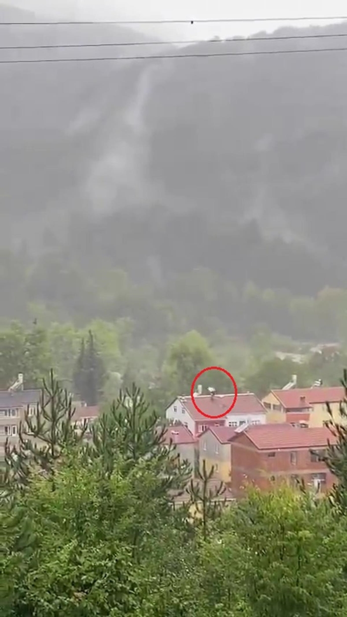 Elektrik direğinin sel sularıyla yıkıldığı anlar da cep telefonu kamerasıyla kaydedildi.