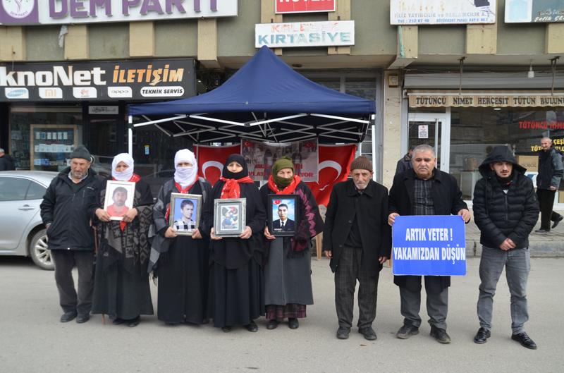 DEM Parti İl Başkanlığı binası önünde bir araya gelen anne ve babalar, "Anneler direniyor", "Evlat nöbetindeyiz" ve "Artık yeter yakamızdan düşün" yazılı pankartlar açtı.