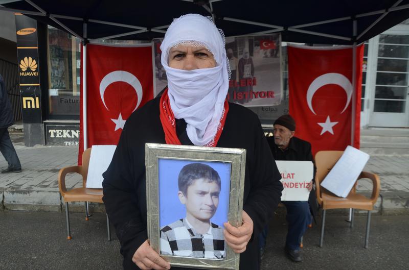 "Anneler direniyor", "Evlat nöbetindeyiz" ve "Artık yeter yakamızdan düşün" yazılı pankartlar açan anne ve babalar, çocuklarına teslim olmaları için çağrıda bulundu.
