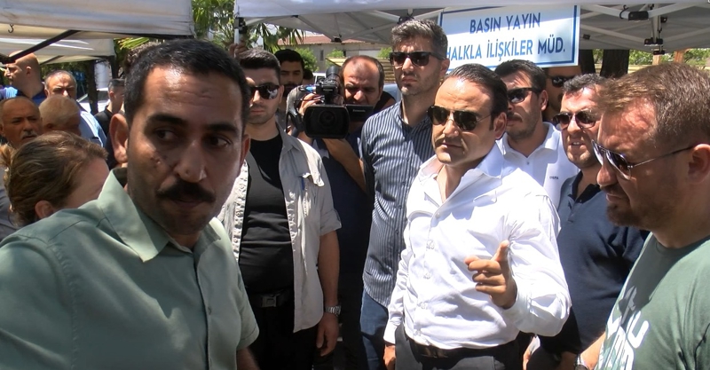 Bunun üzerine Yücel, "Çadırlı ve sandalyeli bir şekilde oturmaları belediye yönetimince uygun değil. Zabıta arkadaşlar, hazır kıta şeklinde beklesinler" diyerek uyarısını yineledi. Polis müdürü de "Çevik kuvvet hazırlansın. Olacak şey mi bu şimdi? Bizi tahrik eden ve kışkırtan, konuyu tırmandıran olay. 'Zabıtaları hazır edin' denilmesi ne anlama geliyor? Türkiye'de kamu mensuplarının başka kamu personeline yönelik bir teşebbüs içerisinde olduğu vaki değildir" dedi. Yücel de "Asla öyle bir gayemiz yok" cevabını verirken, polis müdürü, "Bu husumet niye? Zabıtanın müdahalesi, çadıra değil; devlete ve bizedir" dedi. Yücel de "Lütfen öyle söylemeyin" cevabını verdi.