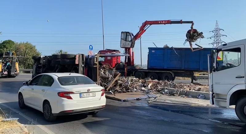 Demir hurda malzemeleri taşıyan kamyon yan yattı. İhbar üzerine olay yerine polis ekipleri sevk edildi. Kamyon şoförü kazadan yara almadan kurtulurken, kamyonun arkasında bulunan metal hurdalar yola döküldü.