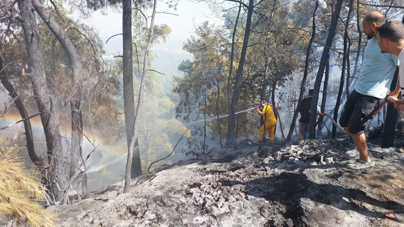 Yangına müdahale çalışmalarına itfaiye ve jandarma ekiplerinin yanı sıra 1 helikopter, 10 arazöz, 3 iş makinası, 2 dozer ile 4 itfaiye aracı destek verdi.