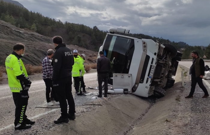 Denizli'den Muğla'ya tarım işçilerini götüren Dündar Taylan idaresindeki 41 AIS 045 plakalı midibüs, Kızılcapınar mevkisinde kontrolden çıkarak yol kenarındaki su kanalına yan yattı.
