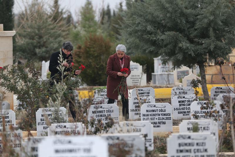 Yeni Mezarlık'taki "Deprem Şehitliği"ne giden vatandaşlar, yakınlarının kabirlerinde dua edip Kur'an-ı Kerim okudu.