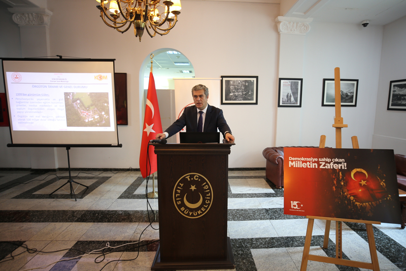 Kartal, FETÖ'ye karşı mücadelenin devam edeceğini belirterek, "Bu çerçevede, FETÖ'nün yurt dışı yapılanmasıyla mücadele, büyükelçiliğimiz dahil, ülkemizin yurt dışındaki temsilciliklerinin en önemli gündem maddelerinden biridir. Bu yönde uzun soluklu mücadelemiz kararlılıkla sürdürülecektir." ifadelerini kullandı.
