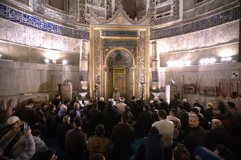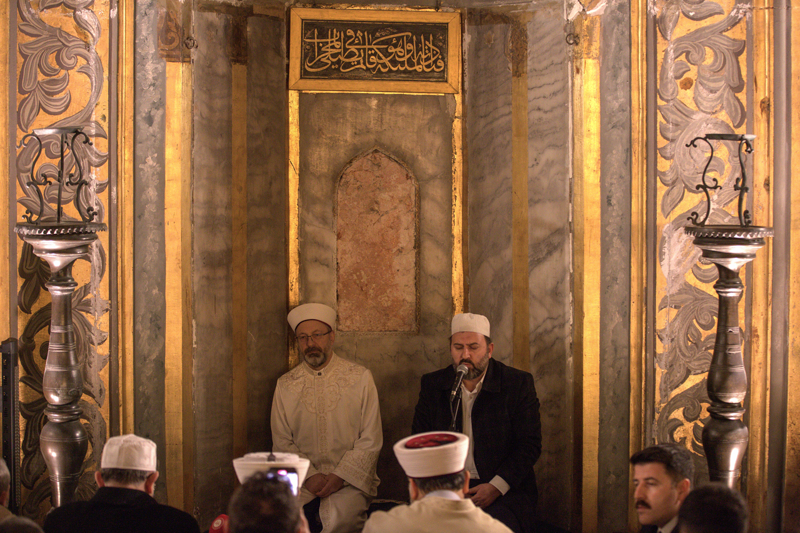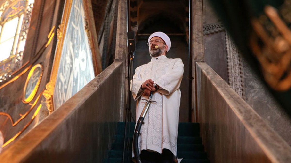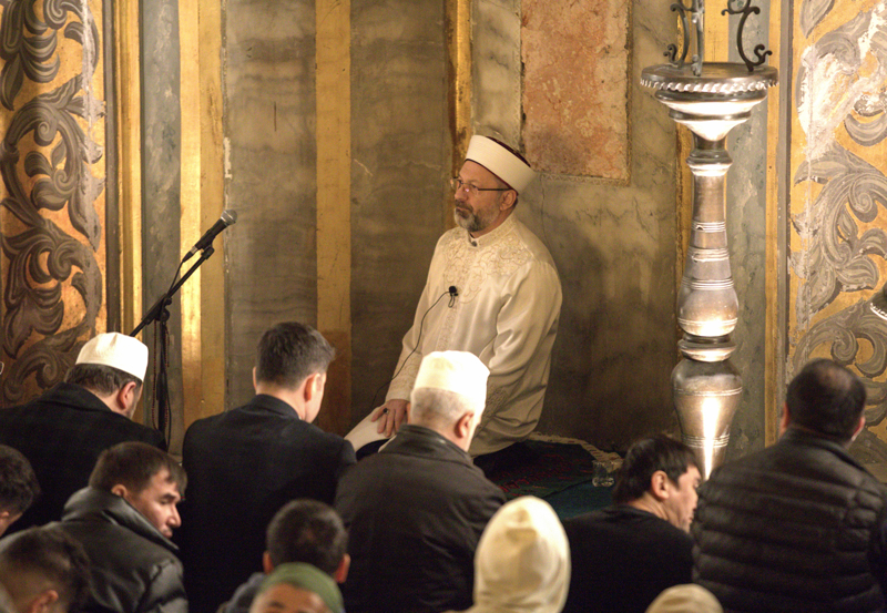 Diyanet İşleri Başkanlığından yapılan açıklamaya göre, Erbaş, Ayasofya-i Kebir Cami-i Şerifi'nde kıldırdığı teravih namazının ardından cemaate hitap etti.