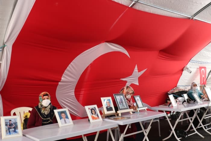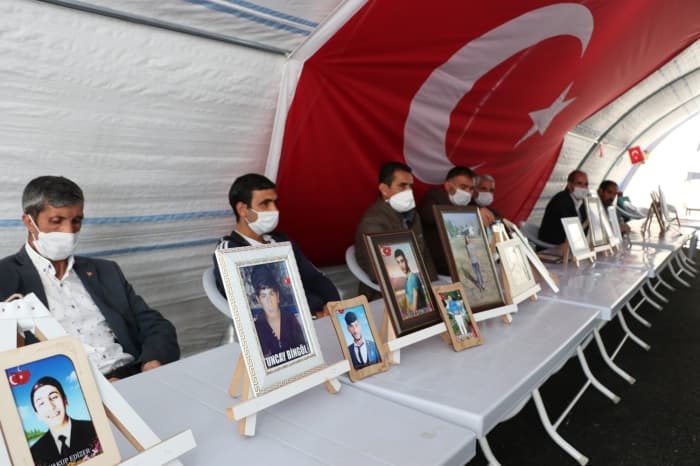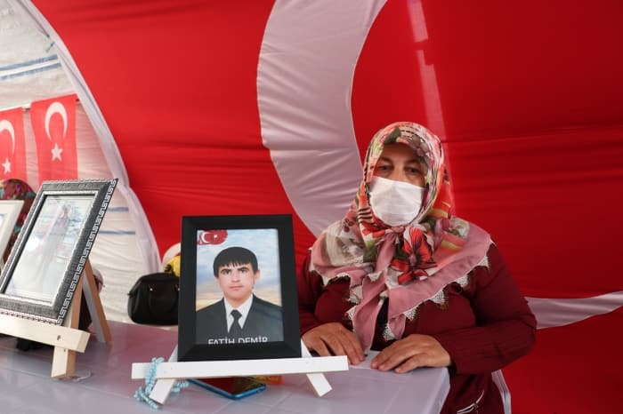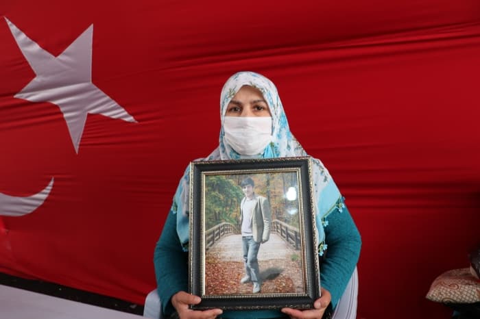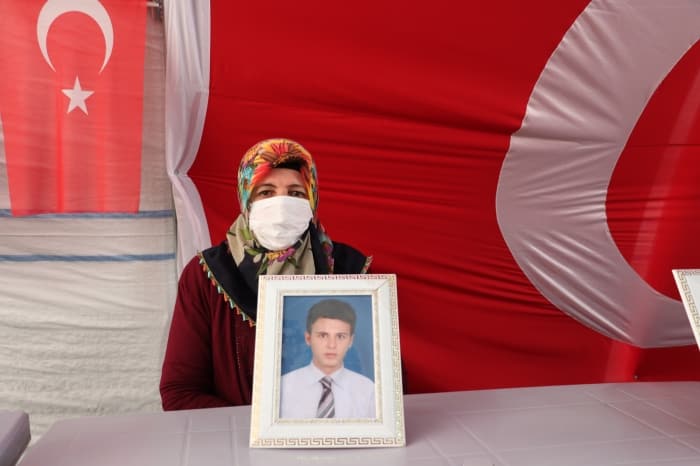 "HDP çocukların kaçırılmasına aracılık ediyor. HDP önünde eylemimize devam ediyoruz. Buraya gelmeyeyim de nereye gideyim? Onlarda vicdan yok. Ramazan ayında koronavirüse rağmen otuyoruz. Vicdanları varsa gelip bize destek versinler. Onlar da çocuğumuzu PKK'dan istesinler. Burada ki ailelerin hepsi kararlı. Eylemimize sonuna kadar devam edeceğiz. Hepimizin çocuğu gelinceye kadar buradayız."
