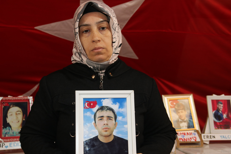 Ellerinde çocuklarının fotoğrafıyla eski HDP il binası önünde bekleyişini sürdüren annelerden Ayten Elhaman, oğlu Bayram'dan 7 yıldır haber alamadığını söyledi.