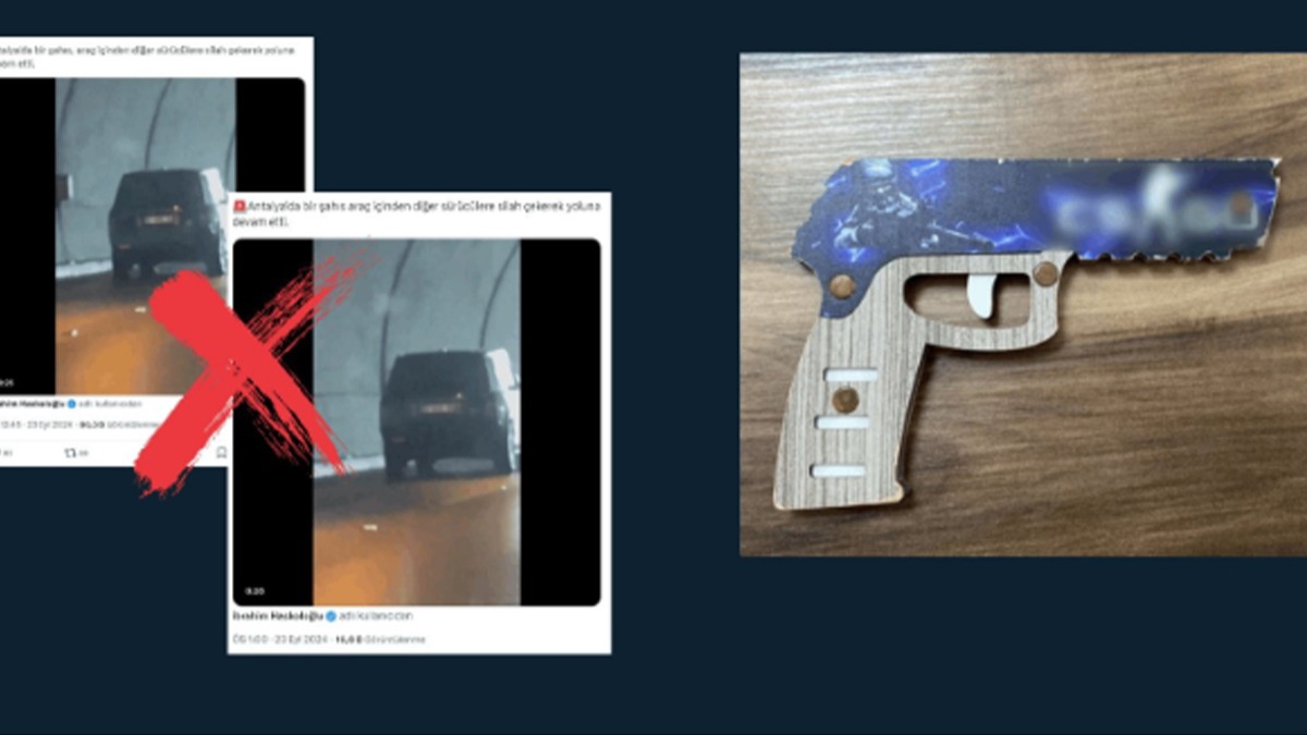 Bazı sosyal medya hesaplarından paylaşılan görüntülerle ilgili, "Antalya'da bir şahıs araç içinden diğer sürücülere silah çekerek yoluna devam etti." iddiası doğru değildir.