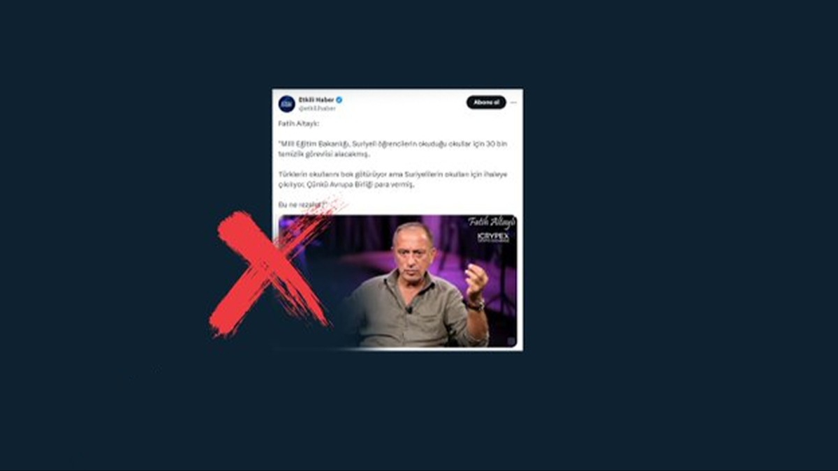 Bazı sosyal medya hesaplarında paylaşılan, 'Türklerin okulları çok kötü durumdayken MEB, Suriyeli öğrencilerin okuduğu okullar için 30 bin temizlik görevlisi alacak' iddiası hakkında İletişim Başkanlığı Dezenformasyonla Mücadele Merkezi'nden (DMM) açıklama yapıldı.