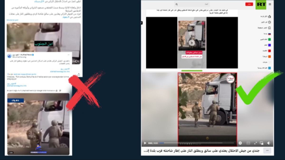 "İddiaya konu görüntülerin Irak'ın Duhok kentinde değil, Filistin'in Batı Şeria'daki El Halil bölgesinde kaydedildiği tespit edilmiştir. Görüntüler, işgalci İsrail askerlerinin bir kamyon sürücüsüne saldırdığı ve aracın lastiklerine ateş ettiği anları göstermektedir. İbranice konuşmaların duyulmaması için bahse konu görüntülere müzik eklendiği tespit edilmiştir. Asılsız iddialara itibar etmeyiniz."