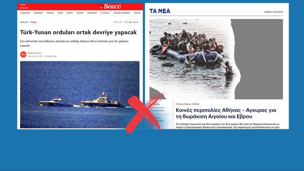 Cumhurbaşkanlığı İletişim Başkanlığı Dezenformasyonla Mücadele Merkezi, bazı basın ve yayın organlarında yer alan "Türk-Yunan orduları ortak devriye yapacak" iddialarının doğru olmadığını bildirdi.