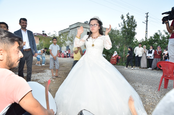 Şekeroba Mahalesi'nde 4 çocuklu ailenin 3'üncü çocuğu olarak dünyaya gelen down sendromlu 15 yaşındaki Özdemir, çevresindeki bazı yakınlarının evlenmesinin ardından evlenip gelinlik giyme hayali kurmaya başladı.