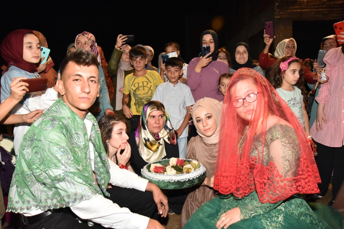 Komşu ve akrabalarının katılımıyla düğünü ve kına gecesi gerçekleştirilen Emine Özdemir'in eline kız kardeşi Huriye Özdemir tarafından kına yakıldı.