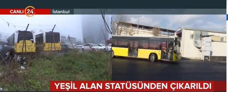 Yeşil alanların afetler sırasındaki önemine değinen 24 TV muhabiri Yazbaşı, "Bir deprem ülkesi olarak Türkiye'nin ne kadar çok yeşil alan kazanabilirse o kadar faydasına ama ne yazık ki CHP yönetimindeki İBB yeşil alanları bir bir alıyor. Şu anda da Levent'e imara açılan eski İETT garajı bölgesindeyiz. Uzun süredir yeşil alan olarak anılan ve yapılaşmaya kapalı olduğu bilinen yaklaşık 36 bin metre karelik eski İETT Garajı arazisi İstanbul Büyükşehir Belediye Meclisi'nin Ocak ayında yaptığı oturumda kabul edilen kararla bir plan değişikliğine gidildi ve imara açıldı. Söz konusu bu alanda gökdelenler, plazalar ve yoğun trafik ortasında kalan tek yeşil alan, tek toplanma alanı burasıydı aslında. Dediğimiz gibi uzun süredir yeşil alan olarak anılıyordu. İBB yönetiminin AK Parti'de olduğu dönemde burası yeşil alan olarak belirlenmişti. Ancak daha sonrasında CHP İBB yönetimine geldiği zaman eski İBB başkanı Ekrem İmamoğlu bir veto kararı verdi ve bu alanın yeşil alan olması kararına bir veto verdi." dedi.