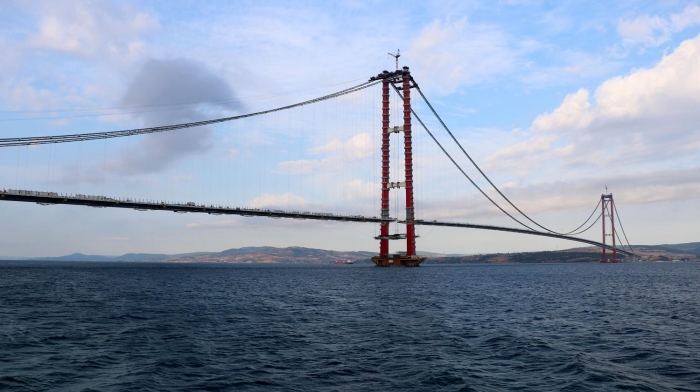 Cumhurbaşkanı Recep Tayyip Erdoğan tarafından 18 Mart 2017'de temeli atılan '1915 Çanakkale Köprüsü'nün büyük bölümü, 5 bine yakın çalışanla 24 saat aralıksız devam eden çalışmalar sonucu 4.5 yılda tamamlandı. 2023 metrelik orta açıklığıyla Cumhuriyet'in 100'üncü kuruluş yılını simgelediği gibi 'dünyanın en uzun orta açıklığa sahip asma köprüsü unvanı'nı da alacak 1915 Çanakkale Köprüsü'nün 318 metre yüksekliğindeki kuleleri ise Çanakkale Deniz Zaferi'nin kazanıldığı tarih olan 18 Mart'ı simgeliyor. Köprünün araç geçiş yolunu oluşturacak toplam 87 tabliye blokundan 81'inin montajı tamamlandı. Artık geriye sadece 6 tabliye montajı kaldı. Asya ve Avrupa yakalarındaki kule ayaklarına getirilen ve birbirine kaynatılan 3'er tabliye bloğunun vinçle yukarıya kaldırılması sonrasında köprünün araç geçiş yolu Avrupa ve Asya kıtalarını birbirine bağlamış olacak. 1915 Çanakkale Köprüsü'nün açılışı da Zafer'in 107'nci yıl dönümünün kutlanacağı 18 Mart 2022'de yapılacak. Çanakkale Boğazı, artık 6 dakika gibi kısa sürede kesintisiz ulaşım imkanı sunacak.