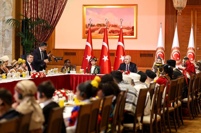 Kurtulmuş, TRT 48. Uluslararası 23 Nisan Çocuk Şenliği kapsamında 26 ülkeden gelen dünya çocuklarını, TBMM Tören Salonu'nda kabul etti.