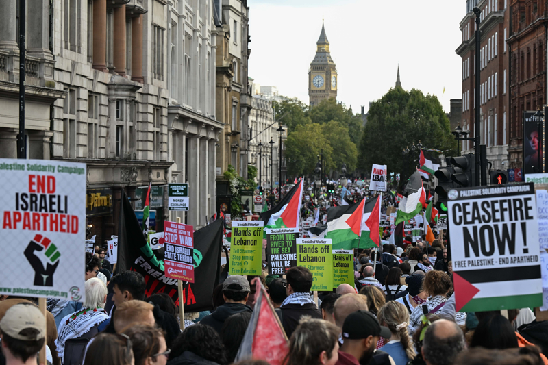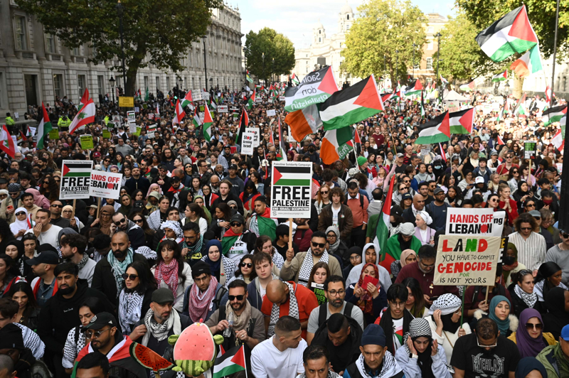 İngiltere'de yüz binlerce kişi İsrail'in Gazze saldırılarının birinci yılında Gazze'de ve Lübnan'da acil ateşkes ile İngiltere'nin İsrail'e silah satışını durdurma çağrısıyla yürüdü.