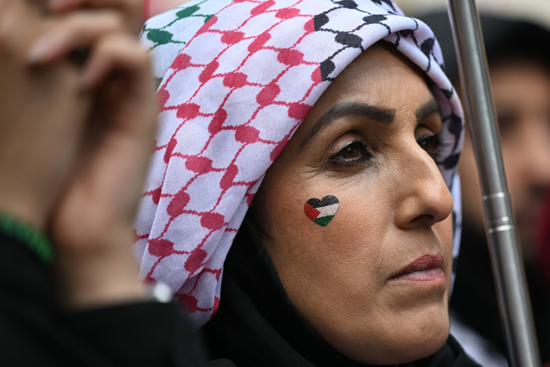 Yürüyüşün sona erdiği Downin Sokağı girişinde kurulan platformdan göstericilere seslenen Filistin'in İngiltere'deki Misyonunun Başkanı Büyükelçi Hüsam Zomlot, son bir yıldır geçen her an İsrail'in bir savaş suçu işlendiğini kaydetti.