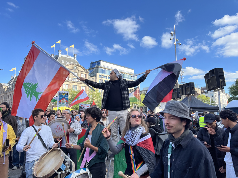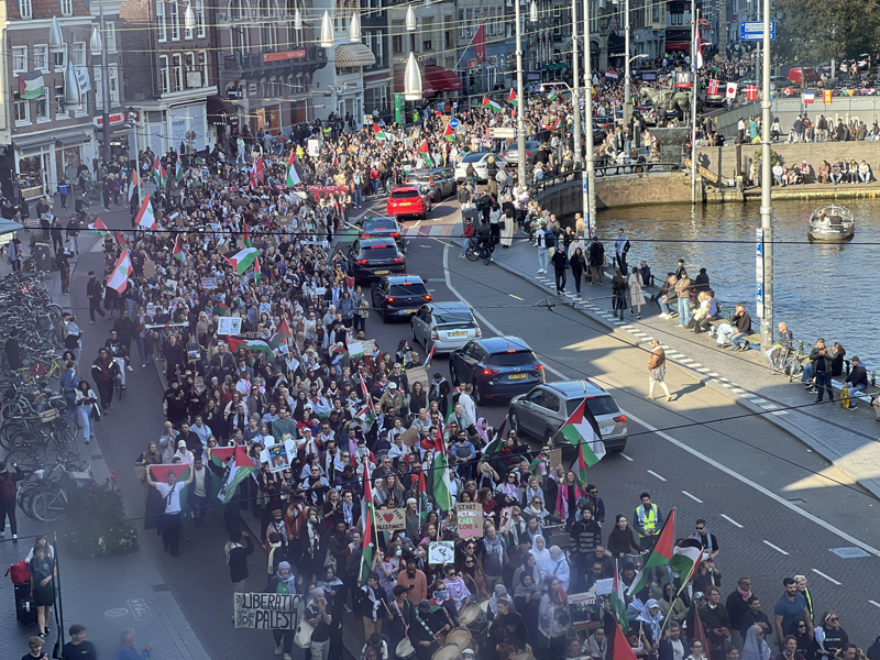 Hollanda'da her hafta farklı bir kentte Filistin'e destek amacıyla yapılan protestolarda bugün binlerce kişi, Dam Meydanı'nda buluştu.