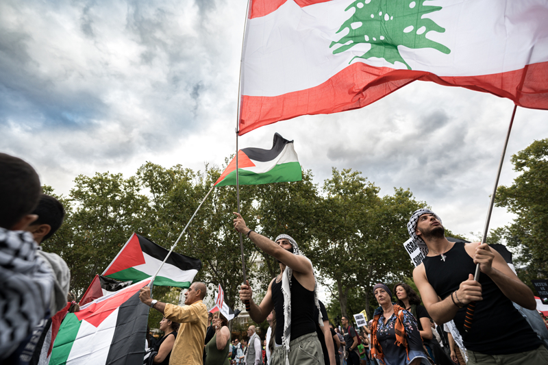 Filistin ve Lübnan destekçileri, Paris'teki ünlü Cumhuriyet Meydanı'nda bir araya geldi.